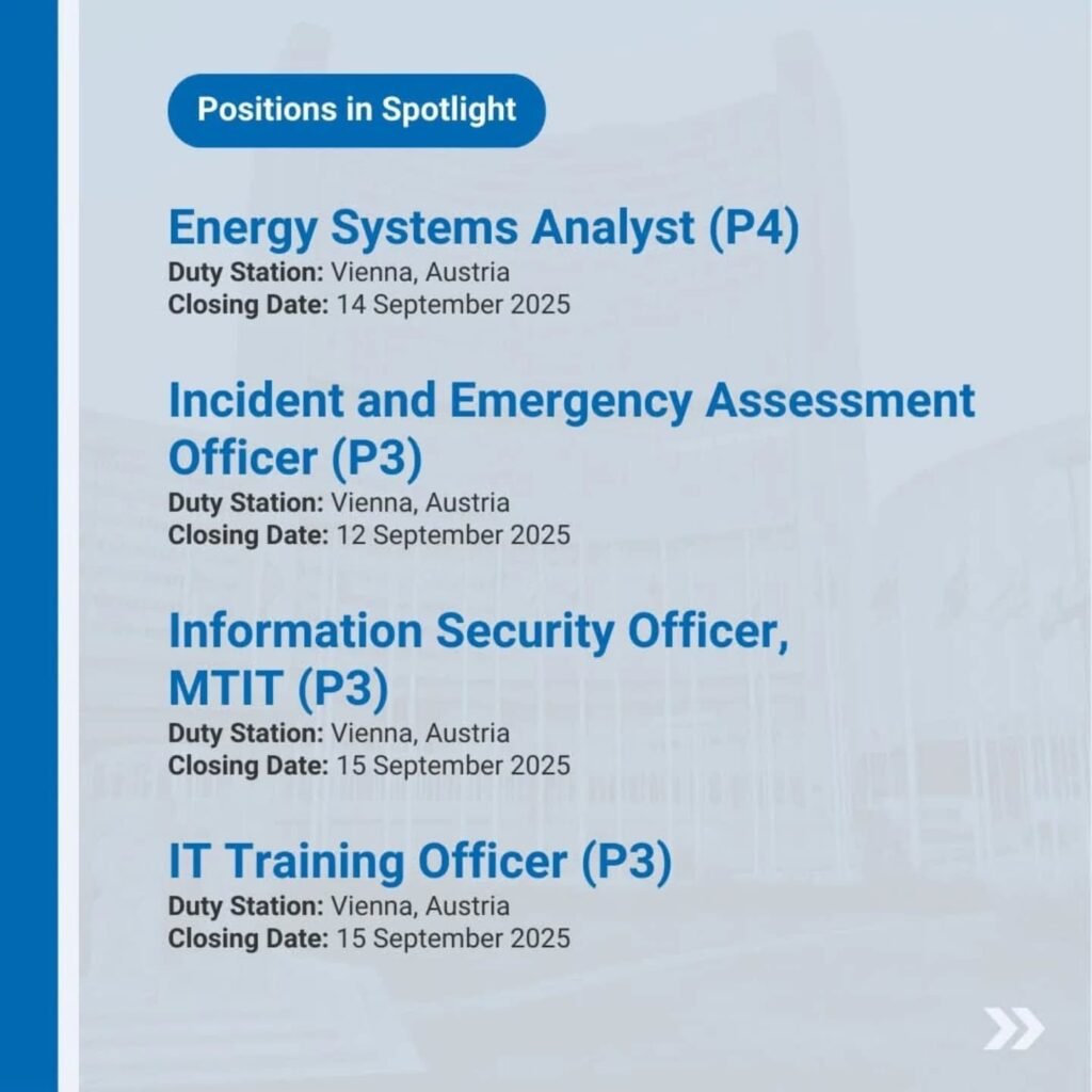 - Duty Station: Seibersdorf, Austria (home to the IAEA’s nuclear applications and safeguards laboratories).